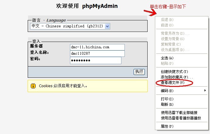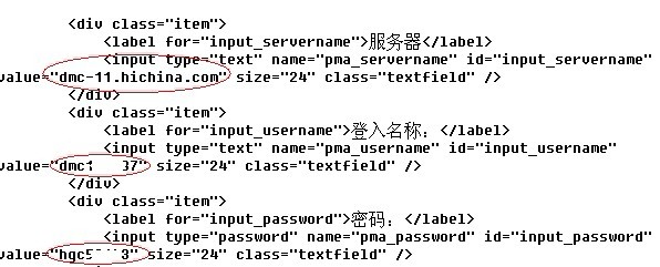 查看源碼后這里顯會顯示MYSQL的數據庫地址,數據庫帳號,數據庫密碼