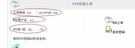 這里會顯示您的FTP上傳地址,FTP帳號和密碼FTP密碼