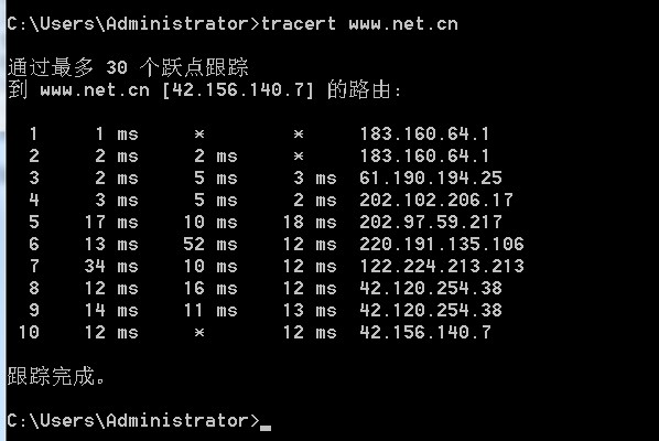 通過向目標發送不同 IP 生存時間 (TTL) 值的“Internet 控制消息協議 (ICMP)”回應數據包,Tracert 診斷程序確定到目標所采取的路由。要求路徑上的每個路由器在轉發數據包之前至少將數據包上的 TTL 遞減 1。數據包上的 TTL 減為 0 時,路由器應該將“ICMP 已超時”的消息發回源系統。
