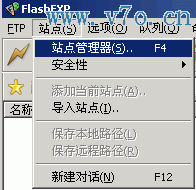 1.打開FlashFXP,點擊“站點”/“站點管理器”。快捷鍵F4