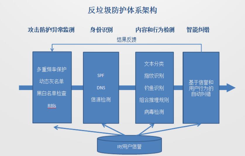 基于行為和內(nèi)容多偉度識別和層層阻攔垃圾郵件。反垃圾郵件系統(tǒng)作用于云郵箱其他模塊的邊界,承受外部壓力,保護系統(tǒng)不被垃圾郵件干擾。