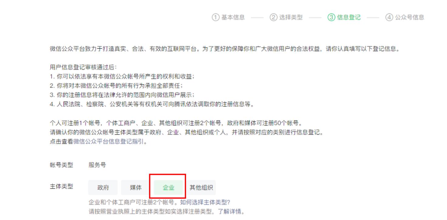 06.選擇主體類型,選擇企業(yè),再根據(jù)您是公司還是個(gè)體工商進(jìn)行填寫(xiě)。